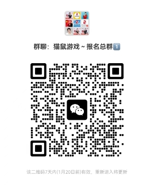 填写完毕,请各位玩家扫码进入 微信总群,记得做好姓名备注,期待您在本次猫鼠游戏中的精彩表现!